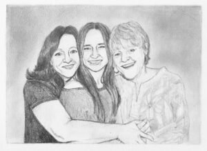 "Katie went above and beyond with this beautiful drawn copy of one of my most special photos of me, my mom, and my grandma. My grandma passed away 7 years ago, and it was a loss that we will never truly stop grieving. She was the heart of the family, and no one has taken it as hard as my mom…her daughter. For Mother’s Day in 2020, I wanted to gift my mom something that would last forever, so I reached out to Katie to draw this beautiful photo of the three generations all together for one of the last times. My mom just bawled when she saw it. Having a drawing like this to hold onto and remember her always is a gift like no other.