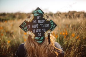 "I had Katie hand paint my graduation cap. It turned out PERFECT!! She made my vision come to life and it was more perfect than I imagined. The colors were vibrant and so beautifully placed! Even after a couple years, it's still just as beautiful."